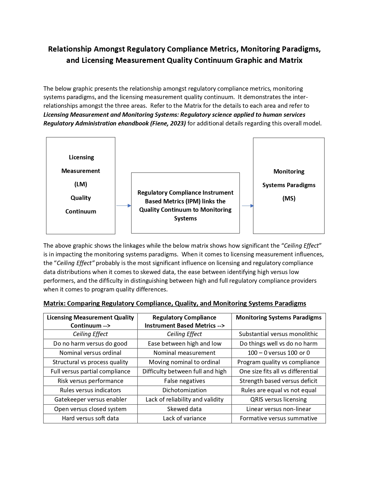 Below is a graphic and matrix showing the relationship amongst regulatory compliance/instrument based metrics, monitoring systems paradigms, and the licensing measurement quality continuum as both jpeg and pdf file formats.